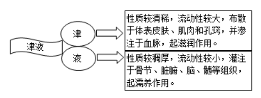 19.津液是機(jī)體一切正常水液的總稱,包括各臟腑組織器官的內(nèi)在體液及正常的分泌物。鑒別如下:
