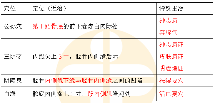 7.足太陰脾經(jīng)穴位表