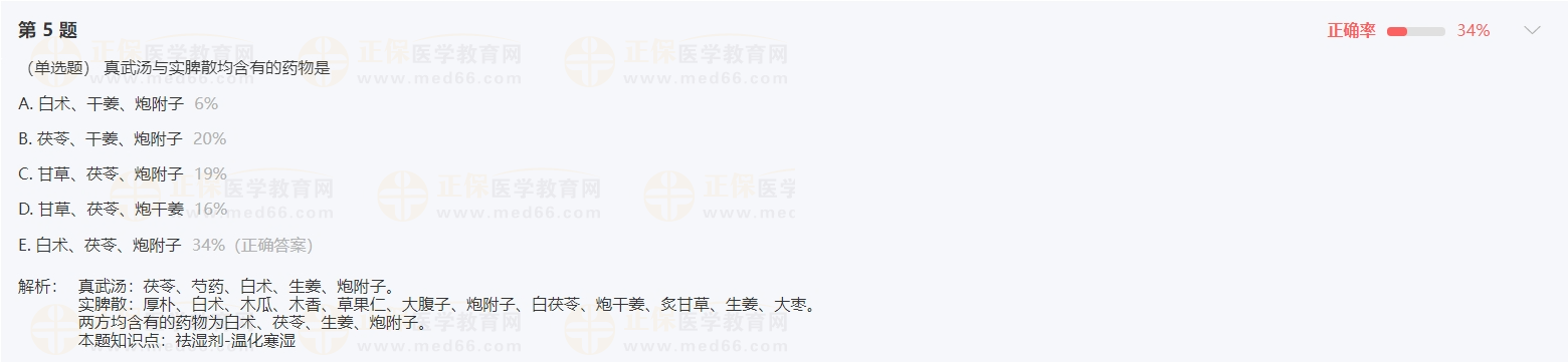 2024中西醫(yī)醫(yī)師摸底測試題:真武湯與實(shí)脾散均含有的藥物是