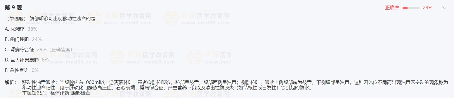2024中西醫(yī)醫(yī)師摸底測(cè)試題:腹部叩診可出現(xiàn)移動(dòng)性濁音的是