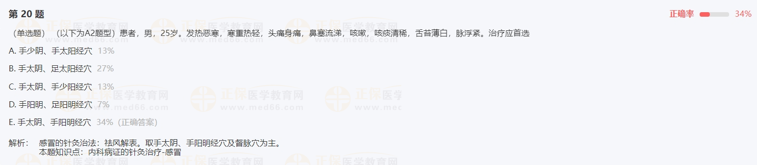“內(nèi)科病證的針灸治療-感冒”2024年中西醫(yī)執(zhí)業(yè)醫(yī)師入學(xué)測(cè)試題