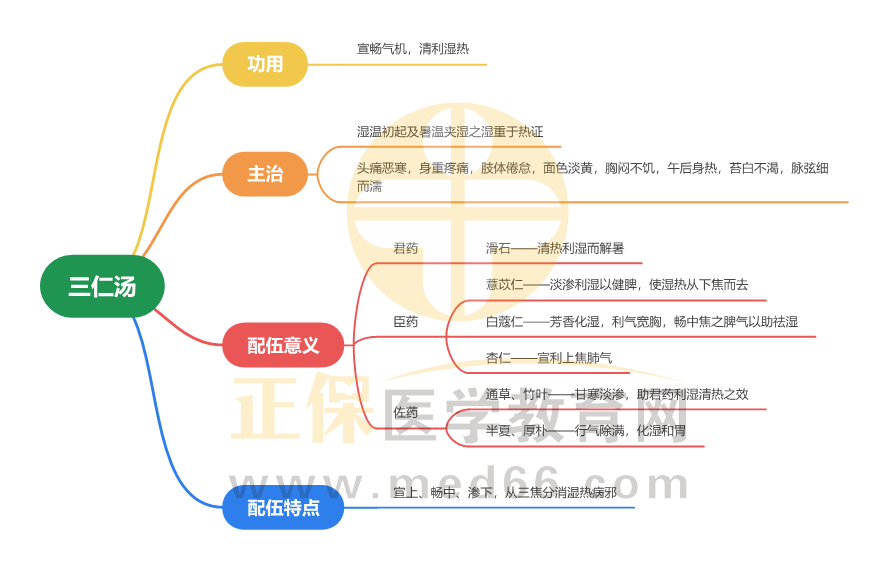 2024年中西醫(yī)執(zhí)業(yè)醫(yī)師方劑學(xué)“三仁湯”考點(diǎn)思維導(dǎo)圖