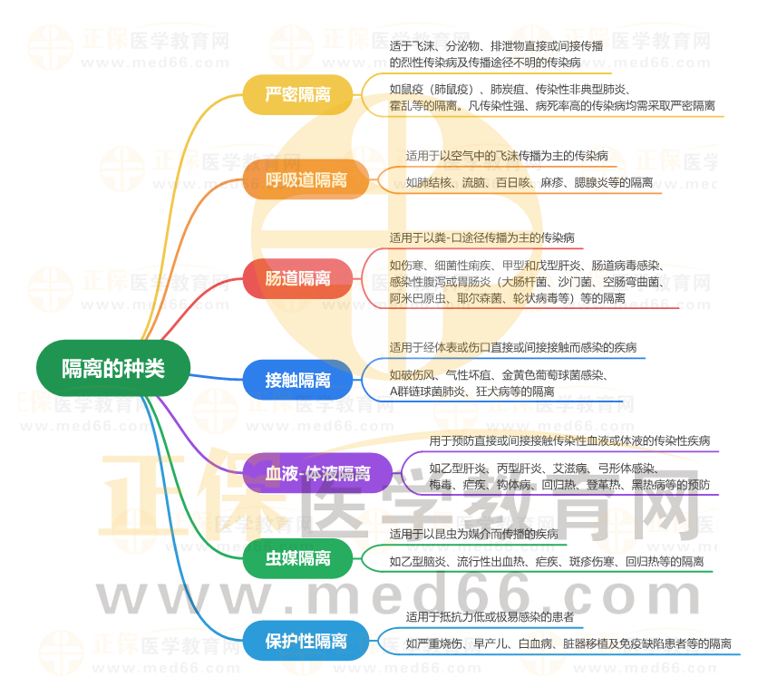 2024年中西醫(yī)執(zhí)業(yè)醫(yī)師傳染病學(xué)“隔離的種類(lèi)”考點(diǎn)思維導(dǎo)圖