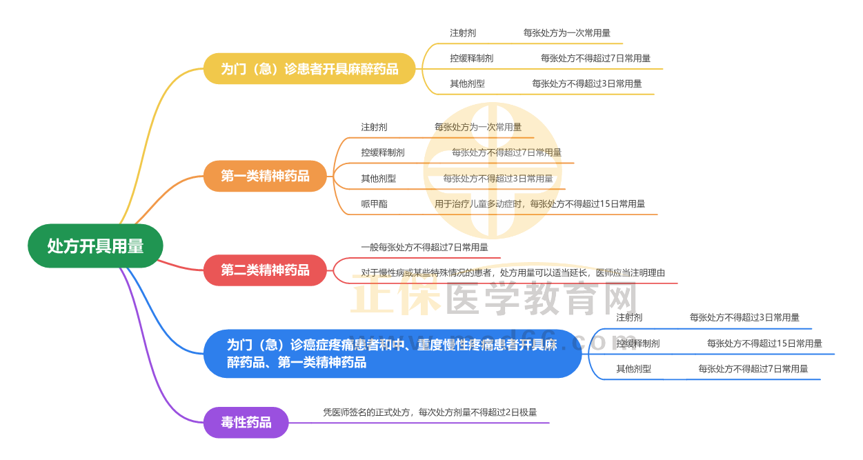 2024年中西醫(yī)執(zhí)業(yè)醫(yī)師《衛(wèi)生法規(guī)》科目“處方開具用量”考點思維導圖