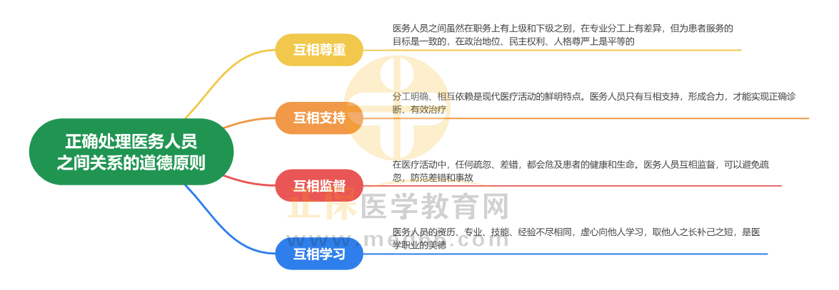 醫(yī)學(xué)倫理學(xué)“正確處理醫(yī)務(wù)人員之間關(guān)系的道德原則”考點思維導(dǎo)圖——2024年中西醫(yī)執(zhí)業(yè)醫(yī)師