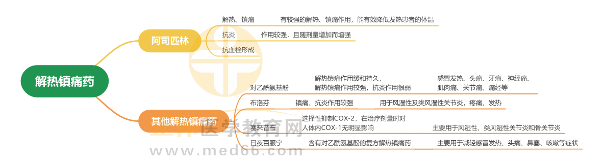 2024年中西醫(yī)執(zhí)業(yè)醫(yī)師“藥理學-解熱鎮(zhèn)痛藥”考點思維導圖