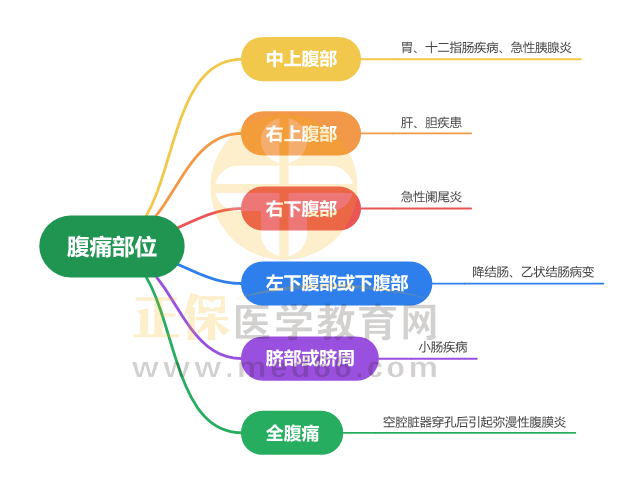 2024年中西醫(yī)執(zhí)業(yè)醫(yī)師常見考點思維導(dǎo)圖:診斷學(xué)基礎(chǔ)-腹痛部位