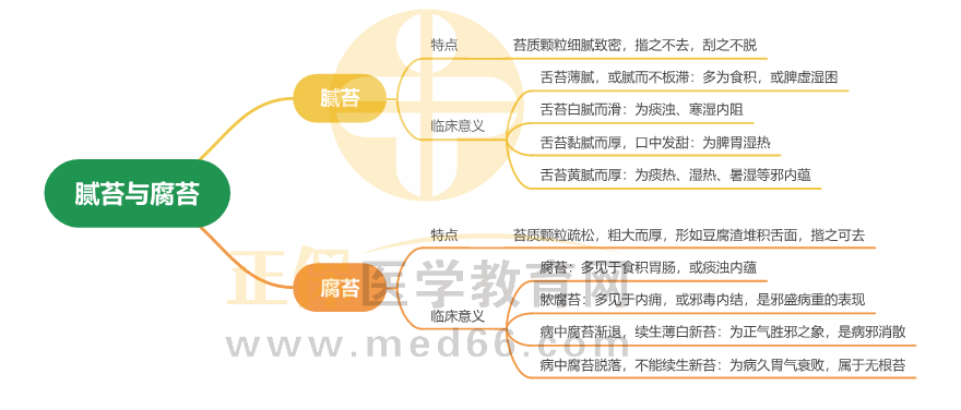 膩苔與腐苔——2024中西醫(yī)執(zhí)業(yè)醫(yī)師《中醫(yī)診斷學》考點思維導圖