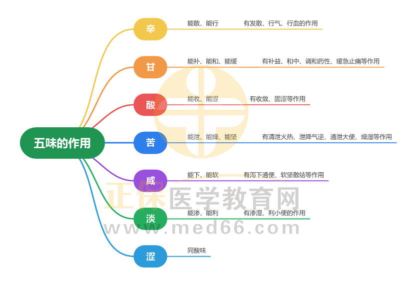 2024年中西醫(yī)執(zhí)業(yè)醫(yī)師【中藥學(xué)】科目“五味的作用”考點(diǎn)思維導(dǎo)圖
