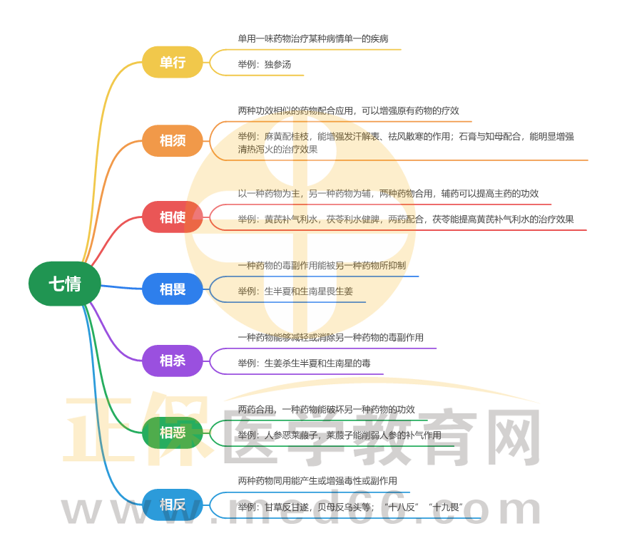 中藥學在中西醫(yī)執(zhí)業(yè)醫(yī)師考試中是記憶型科目,藥物的功效、主治是考查重點。醫(yī)學教育網小編為大家整理“七情”考點思維導圖供大家復習: