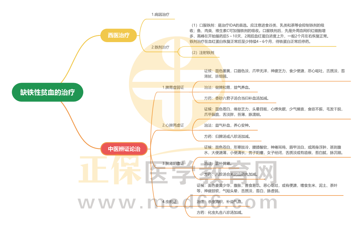 2024年中西醫(yī)執(zhí)業(yè)醫(yī)師“中西醫(yī)內(nèi)科學(xué)-缺鐵性貧血的治療”考點(diǎn)思維導(dǎo)圖