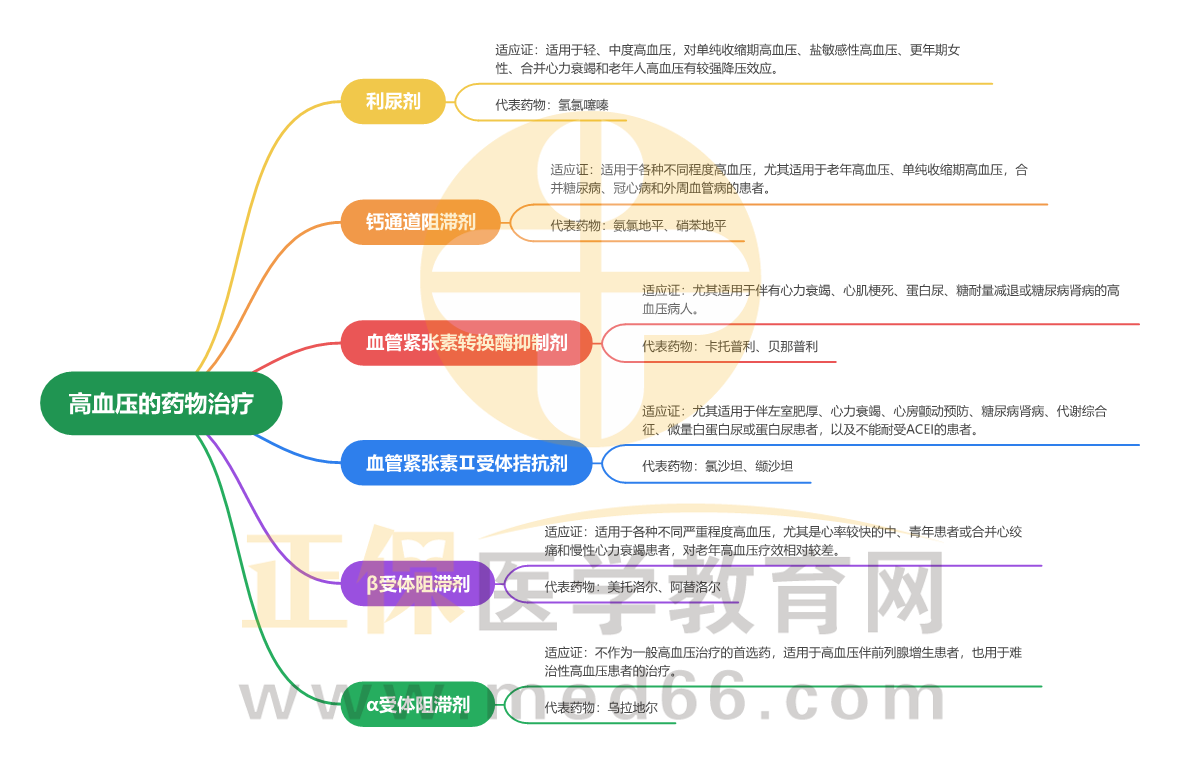2024年中西醫(yī)執(zhí)業(yè)醫(yī)師中西醫(yī)內(nèi)科學(xué)“高血壓的藥物治療”考點(diǎn)思維導(dǎo)圖