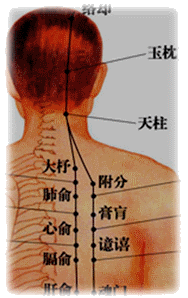 【定位】在頸后區(qū),橫平第2頸椎棘突上際,斜方肌外緣凹陷中。