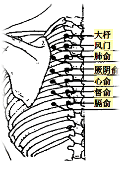 第一大杼二風(fēng)門(mén),三椎肺俞厥陰四,