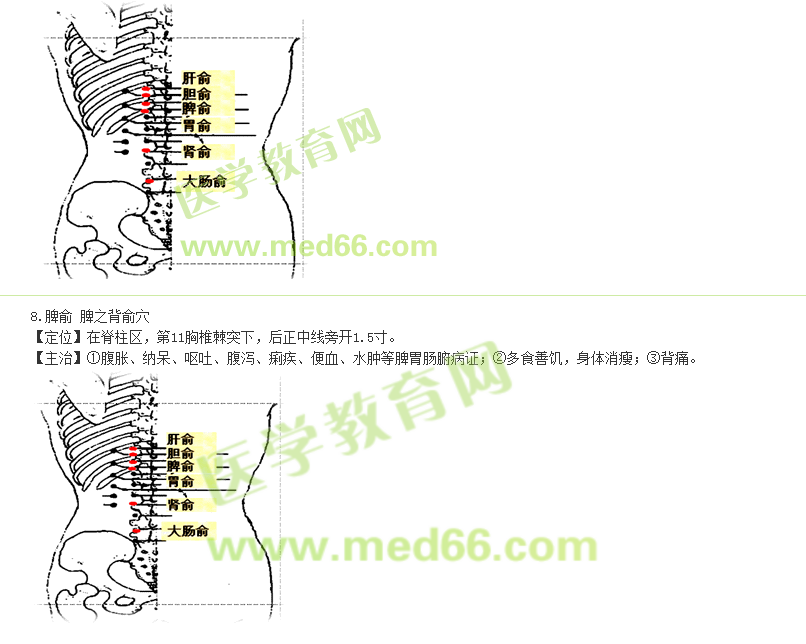 【定位】在脊柱區(qū),第9胸椎棘突下,后正中線旁開(kāi)1.5寸。
