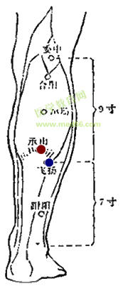 【定位】在小腿后區(qū),腓腸肌兩肌腹與肌腱交角處。