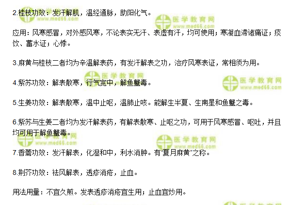 (1)風寒感冒。為發(fā)汗解表之要藥醫(yī)學|教育網(wǎng)。
