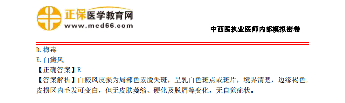 為了幫助2019年中西醫(yī)執(zhí)業(yè)醫(yī)師資格考試的考生及時(shí)的掌握命題規(guī)律,網(wǎng)校專業(yè)教學(xué)團(tuán)隊(duì)選取歷年具有代表性的試題組卷(綜合考慮了各科分值占比及難易度情況),對(duì)廣大考生進(jìn)行免費(fèi)實(shí)戰(zhàn)??荚u(píng)測(cè),以下是醫(yī)學(xué)教育網(wǎng)整理的“考前估分|中西醫(yī)執(zhí)業(yè)醫(yī)師2019年模考密卷第4單元(二十三)”希望可以幫助考生清楚自己的復(fù)習(xí)效果。