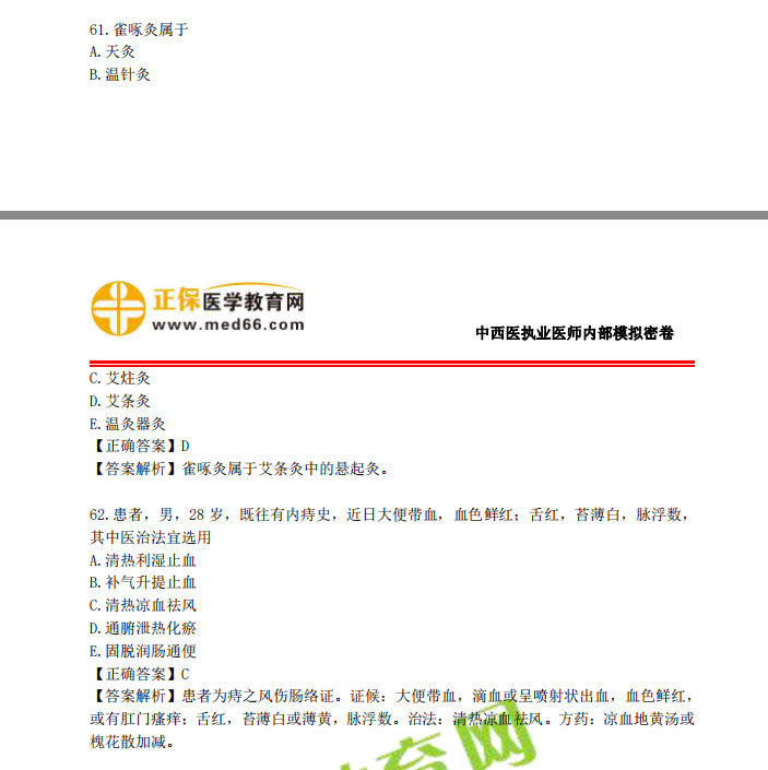 以上關(guān)于“考前估分|中西醫(yī)執(zhí)業(yè)醫(yī)師2019年模考密卷第4單元(十三)”的內(nèi)容,由醫(yī)學(xué)教育網(wǎng)編輯為您整理。希望可以幫助到大家,更多的文章隨時關(guān)注醫(yī)學(xué)教育網(wǎng)中西醫(yī)執(zhí)業(yè)醫(yī)師輔導(dǎo)精華欄目!醫(yī)考愛打卡是醫(yī)學(xué)教育網(wǎng)推出的醫(yī)考人免費(fèi)刷題微信小程序,讓備考有計劃,讓學(xué)習(xí)有效率,助力你的醫(yī)師考試。 涵蓋100個精選考點(diǎn)+400道題目及解析!立即免費(fèi)刷題>>
