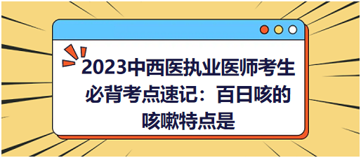 - · 百日咳的咳嗽特點是?2023中西醫(yī)執(zhí)業(yè)醫(yī)師考試考點聽聲音