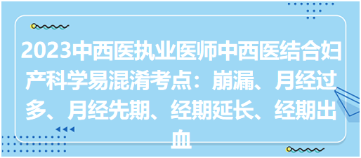 2023中西醫(yī)執(zhí)業(yè)醫(yī)師考試重點(diǎn):中西醫(yī)結(jié)合婦產(chǎn)科學(xué)易混淆考點(diǎn)總結(jié),在距離考試一個月的時(shí)間里,充分吸收醫(yī)師考試中的必背重點(diǎn)考點(diǎn),才能在這次考試中穩(wěn)定發(fā)揮,中西醫(yī)執(zhí)業(yè)醫(yī)師考試中西醫(yī)結(jié)合婦產(chǎn)科學(xué)從來都是考試的重點(diǎn)考點(diǎn),今日分享:中西醫(yī)結(jié)合婦產(chǎn)科學(xué)易混淆考點(diǎn)崩漏、月經(jīng)過多、月經(jīng)先期、經(jīng)期延長、經(jīng)期出血。