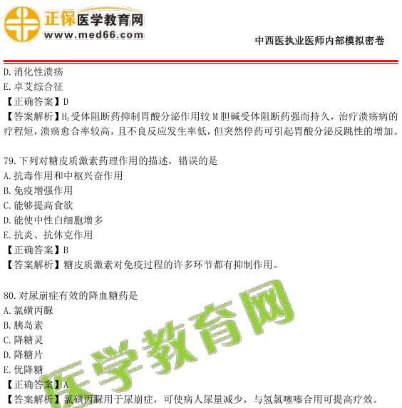 為了幫助2019年中西醫(yī)執(zhí)業(yè)醫(yī)師資格考試的考生及時的掌握命題規(guī)律,網(wǎng)校專業(yè)教學(xué)團隊選取歷年具有代表性的試題組卷(綜合考慮了各科分值占比及難易度情況),對廣大考生進行免費實戰(zhàn)模考評測,以下是醫(yī)學(xué)教育網(wǎng)整理的“第76-80題|2019年中西醫(yī)執(zhí)業(yè)醫(yī)師??济芫淼?單元”希望可以幫助考生清楚自己的復(fù)習(xí)效果。