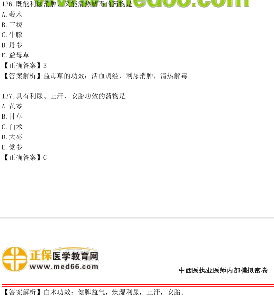 為了幫助2019年中西醫(yī)執(zhí)業(yè)醫(yī)師資格考試的考生及時的掌握命題規(guī)律,網(wǎng)校專業(yè)教學(xué)團隊選取歷年具有代表性的試題組卷(綜合考慮了各科分值占比及難易度情況),對廣大考生進行免費實戰(zhàn)??荚u測,以下是醫(yī)學(xué)教育網(wǎng)整理的“第136-140題|2019年中西醫(yī)執(zhí)業(yè)醫(yī)師??济芫淼?單元”希望可以幫助考生清楚自己的復(fù)習(xí)效果。