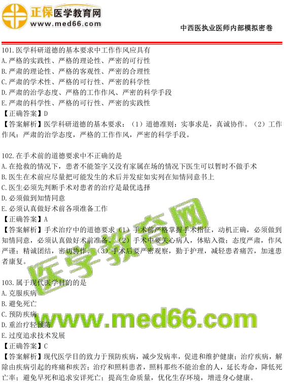 為了幫助2019年中西醫(yī)執(zhí)業(yè)醫(yī)師資格考試的考生及時的掌握命題規(guī)律,網校專業(yè)教學團隊選取歷年具有代表性的試題組卷(綜合考慮了各科分值占比及難易度情況),對廣大考生進行免費實戰(zhàn)??荚u測,以下是醫(yī)學教育網整理的“第101-105題|??济芫淼?單元中西醫(yī)執(zhí)業(yè)醫(yī)師2019年”希望可以幫助考生清楚自己的復習效果。