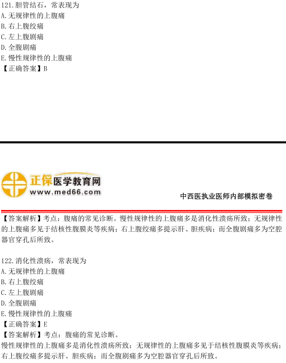為了幫助2019年中西醫(yī)執(zhí)業(yè)醫(yī)師資格考試的考生及時的掌握命題規(guī)律,網(wǎng)校專業(yè)教學(xué)團隊選取歷年具有代表性的試題組卷(綜合考慮了各科分值占比及難易度情況),對廣大考生進行免費實戰(zhàn)??荚u測,以下是醫(yī)學(xué)教育網(wǎng)整理的“??济芫淼?21-125題|2019年中西醫(yī)執(zhí)業(yè)醫(yī)師第二單元”希望可以幫助考生清楚自己的復(fù)習(xí)效果。