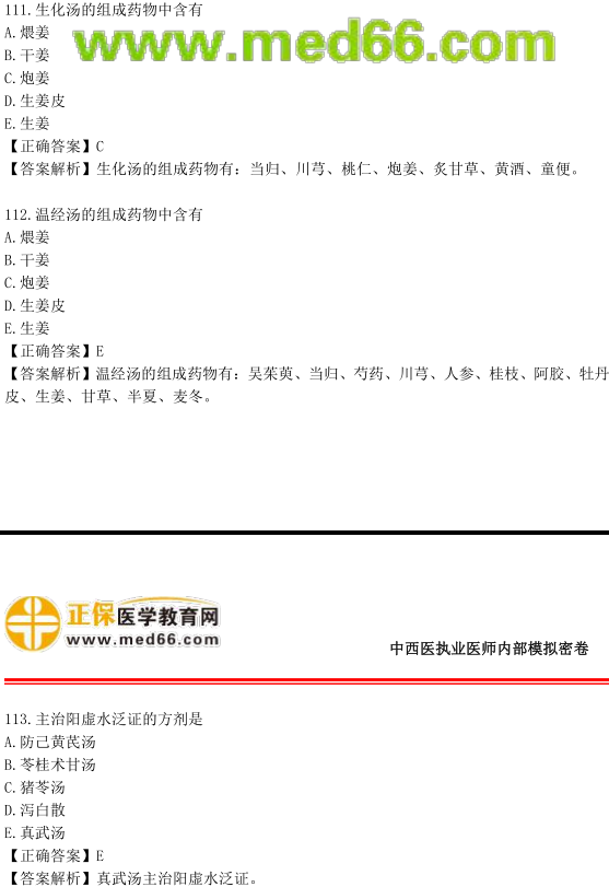 為了幫助2019年中西醫(yī)執(zhí)業(yè)醫(yī)師資格考試的考生及時的掌握命題規(guī)律,網(wǎng)校專業(yè)教學(xué)團(tuán)隊選取歷年具有代表性的試題組卷(綜合考慮了各科分值占比及難易度情況),對廣大考生進(jìn)行免費(fèi)實戰(zhàn)??荚u測,以下是醫(yī)學(xué)教育網(wǎng)整理的“第111-115題|??济芫淼?單元中西醫(yī)執(zhí)業(yè)醫(yī)師2019年”希望可以幫助考生清楚自己的復(fù)習(xí)效果。