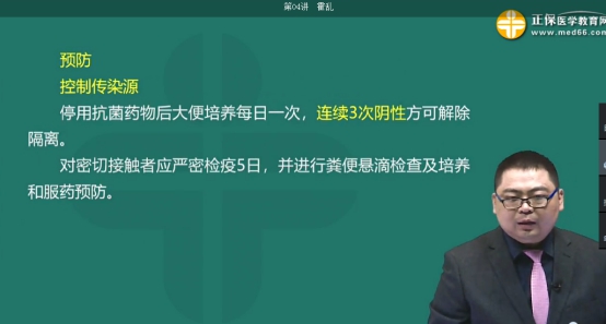 A:隔離至臨床癥狀消失,糞便隔日培養(yǎng)1次,連續(xù)2次陰性