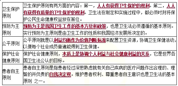 衛(wèi)生法的基本原則是指反映衛(wèi)生法立法精神、適用于衛(wèi)生法律關(guān)系的基本原則。主要有以下五個(gè)方面: