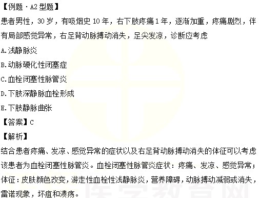 中西醫(yī)執(zhí)業(yè)醫(yī)師考試“血栓閉塞性脈管炎”A2型題(考點點撥)