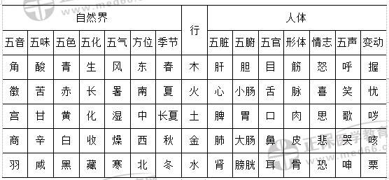 4.事物屬性的五行歸類表