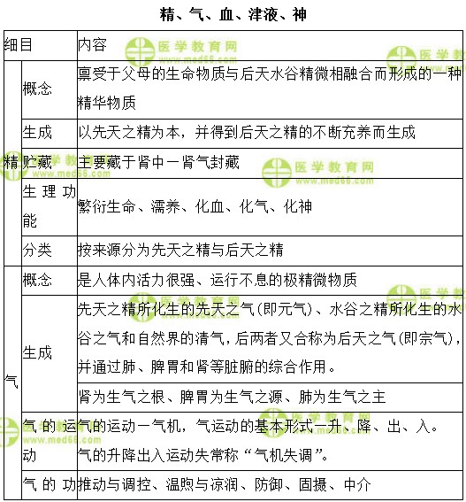 中西醫(yī)結(jié)合執(zhí)業(yè)醫(yī)師易混淆必考考點:精、氣、血、津液、神
