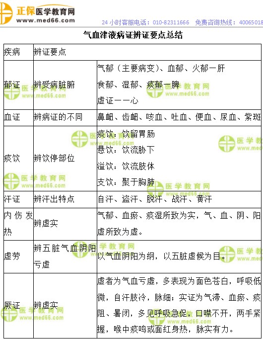 表格歸納“氣血津液病證辨證”要點(diǎn)總結(jié)