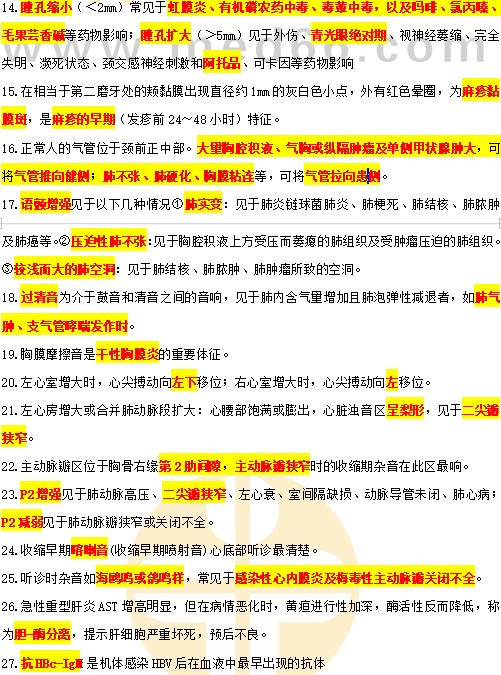 診斷學基礎考點速記30條