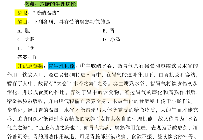 2022年中西醫(yī)執(zhí)業(yè)醫(yī)師考試考點精講【中醫(yī)基礎(chǔ)理論】篇—六腑