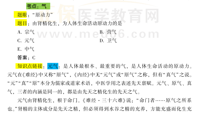 中西醫(yī)結(jié)合執(zhí)業(yè)醫(yī)師資格考試是行業(yè)準(zhǔn)入考試,是評價(jià)申請中西醫(yī)醫(yī)師資格者是否具備從事執(zhí)業(yè)醫(yī)師工作所必須的專業(yè)知識與技能的考試。為了幫助考生們掌握考點(diǎn)更方便地復(fù)習(xí),醫(yī)學(xué)教育網(wǎng)編輯為大家整理了2022年中西醫(yī)結(jié)合執(zhí)業(yè)醫(yī)師資格考試【中醫(yī)基礎(chǔ)理論】氣的相關(guān)考核點(diǎn),提供考生參考: