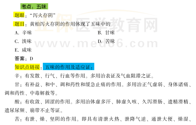 中西醫(yī)結合執(zhí)業(yè)醫(yī)師資格考試是行業(yè)準入考試,是評價申請中西醫(yī)醫(yī)師資格者是否具備從事執(zhí)業(yè)醫(yī)師工作所必須的專業(yè)知識與技能的考試。為了幫助考生們掌握考點更方便地復習,醫(yī)學教育網編輯為大家整理了2022年中西醫(yī)結合執(zhí)業(yè)醫(yī)師資格考試【中藥學】五味的相關考核點,提供考生參考: