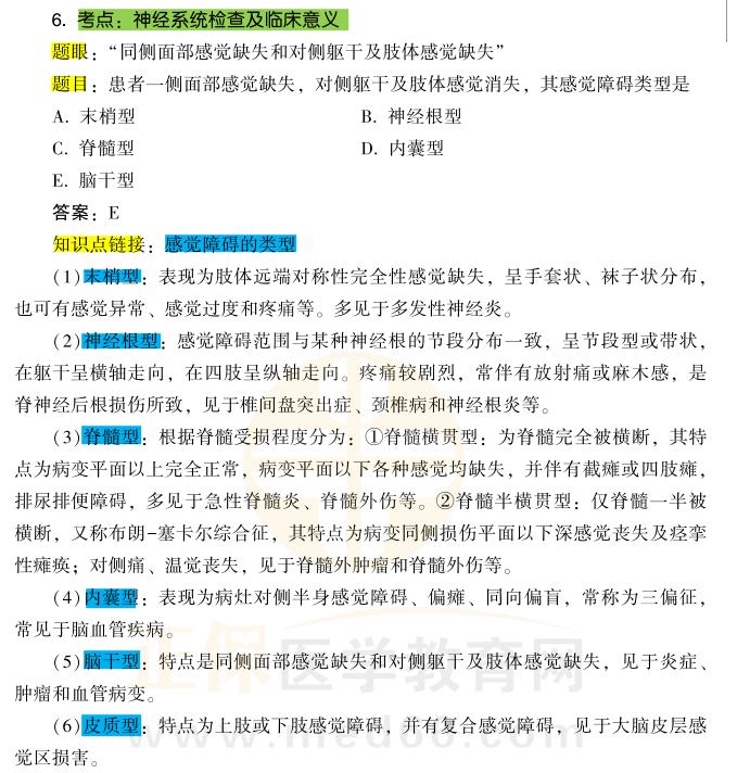 2022年中西醫(yī)執(zhí)業(yè)醫(yī)師資格考試診斷學(xué)基礎(chǔ)相關(guān)考核:感覺障礙的類型