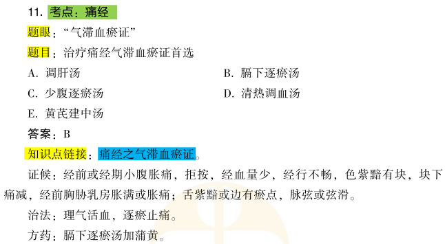 2022年中西醫(yī)結(jié)合執(zhí)業(yè)醫(yī)師資格考試婦科學考核點:痛經(jīng)之氣滯血瘀證