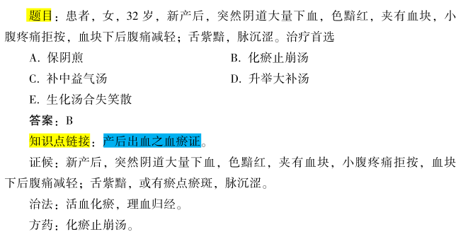 2022年中西醫(yī)結(jié)合執(zhí)業(yè)醫(yī)師資格考試婦科學(xué)考核點(diǎn):產(chǎn)后出血之血瘀證