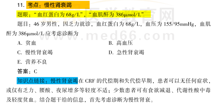 2022年中西醫(yī)結合執(zhí)業(yè)醫(yī)師資格考試內(nèi)科學考核點:慢性腎衰竭