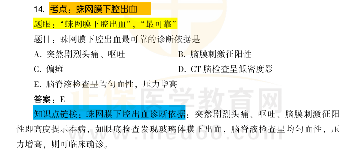 2022年中西醫(yī)結(jié)合執(zhí)業(yè)醫(yī)師資格考試內(nèi)科學(xué)考核點(diǎn):蛛網(wǎng)膜下腔出血的診斷依據(jù)