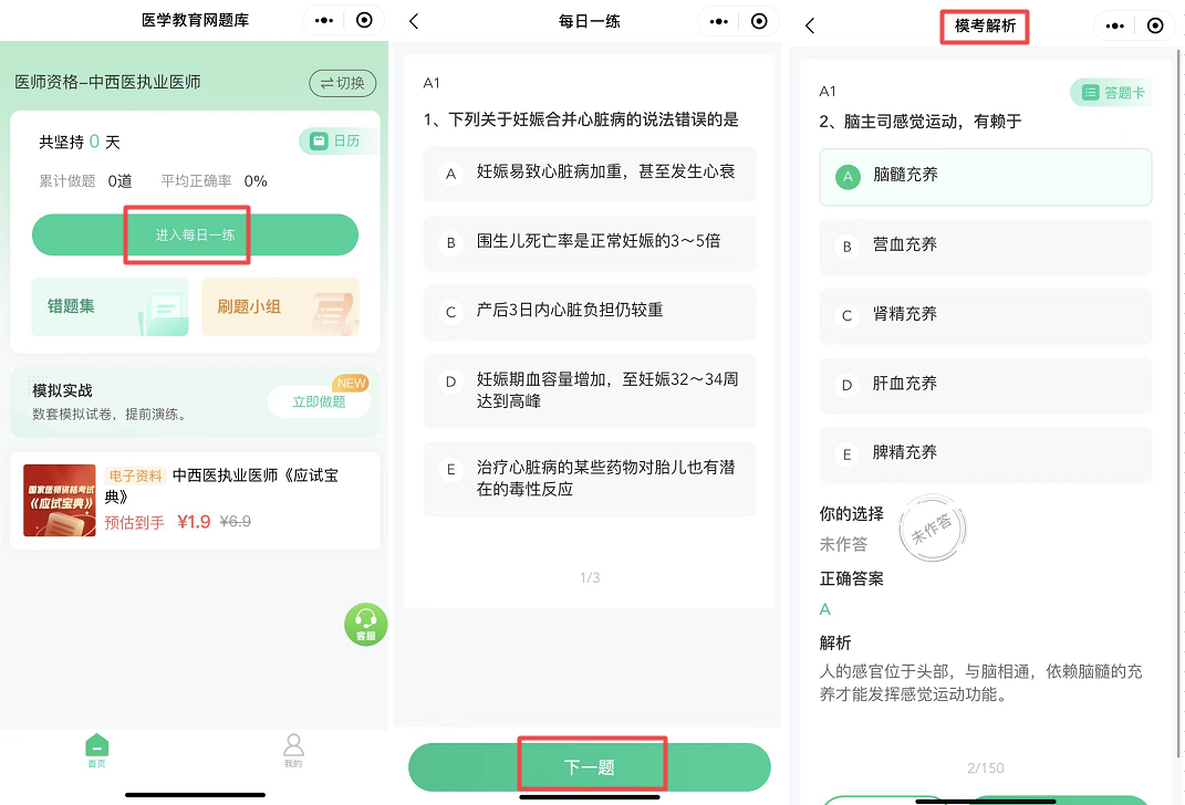 1.請在醫(yī)學(xué)教育網(wǎng)題庫小程序內(nèi),進(jìn)行查看和做題。