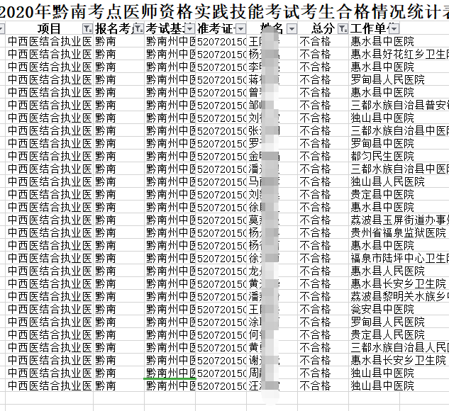 2020年黔南考點(diǎn)醫(yī)師資格實(shí)踐技能考試考生合格情況統(tǒng)計(jì)表.xls
