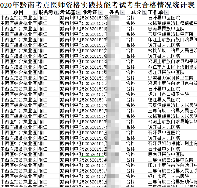 2020年黔南考點(diǎn)醫(yī)師資格實(shí)踐技能考試考生合格情況統(tǒng)計(jì)表.xls