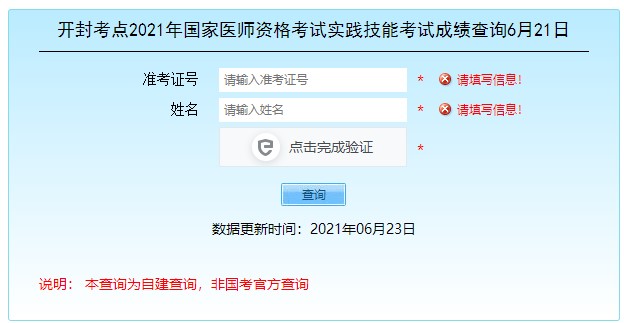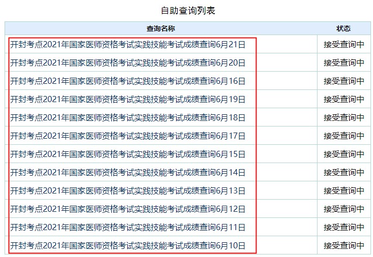 開封考點(diǎn)2021年醫(yī)師資格考試實(shí)踐技能考試成績查詢?nèi)肟谝呀?jīng)開通,請廣大已經(jīng)考完實(shí)踐技能考試的考生及時(shí)登錄成績查詢官網(wǎng)進(jìn)行查分: