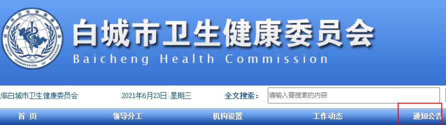 查詢(xún)方法:登錄白城市衛(wèi)生健康委員會(huì)官方網(wǎng)站,點(diǎn)擊——通知公告,進(jìn)入通知公告板塊。